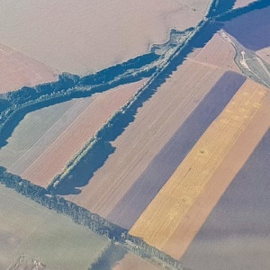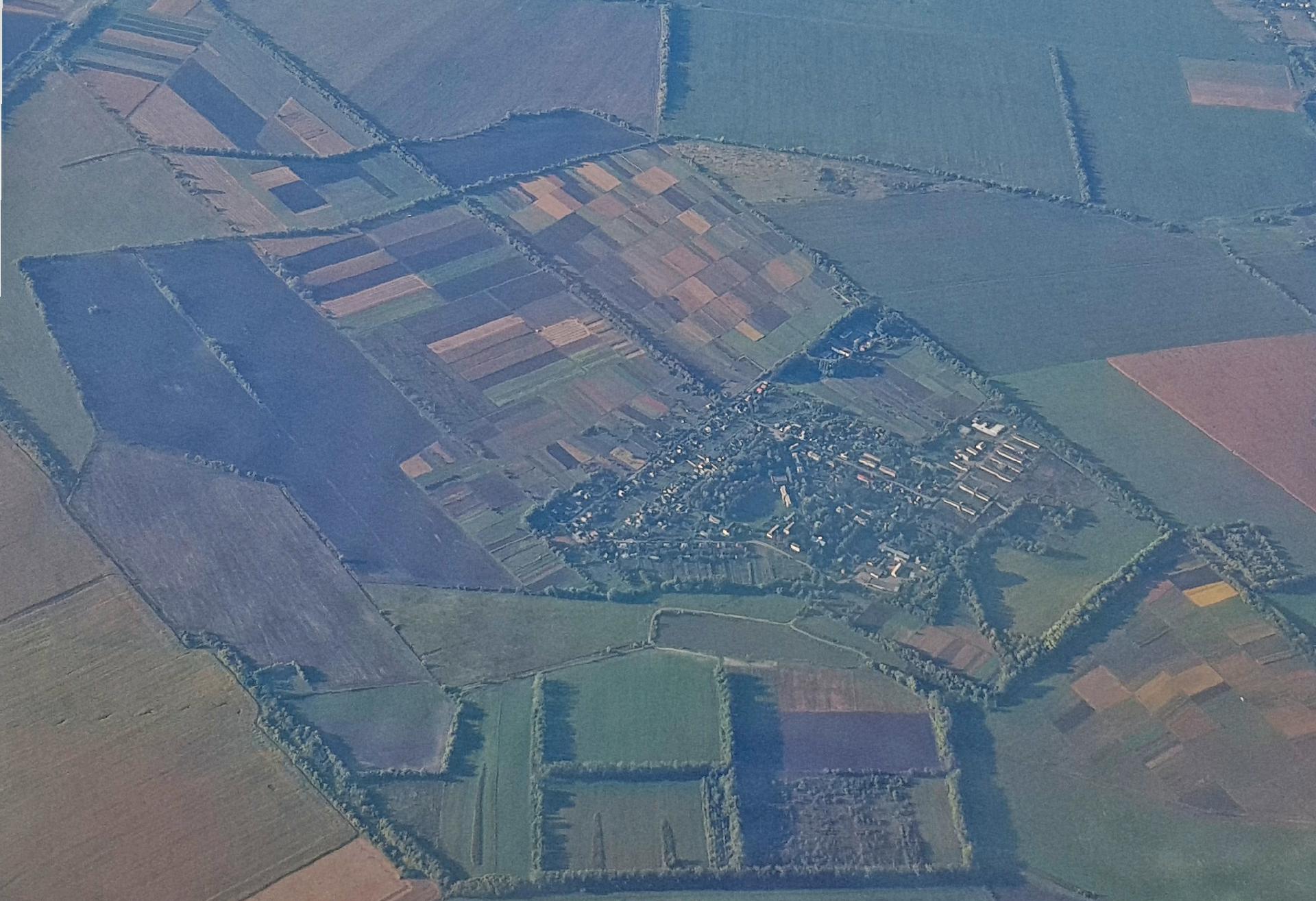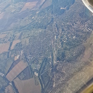 Nach einer schlaflosen Nacht am Flughafen ging es um 5:00 Uhr morgens mit Ukraine International Airlines von Frankfurt über Kiew nach Charkiw. Nach Sonnenaufgang boten sich bei bestem Wetter interessante Blicke auf die Agrarlandschaft sowie die Dörfer und Städte in Südpolen und der Ukraine.