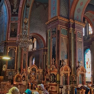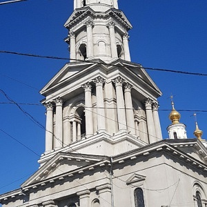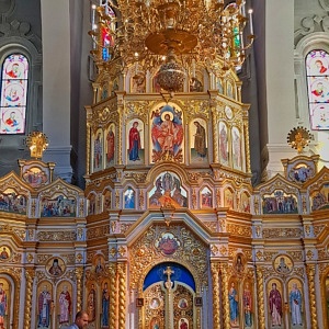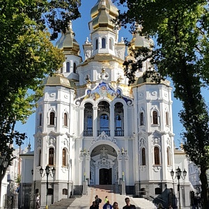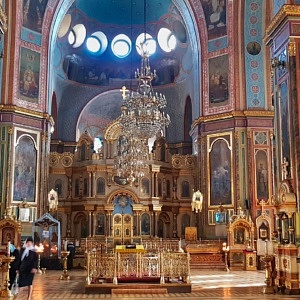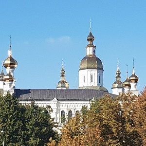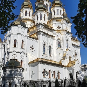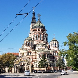 Am nächsten Morgen war der zweite Teil meiner Stadtbesichtigung u.a. durch zwei weitere Kirchen geprägt. Die neo-byzantinische Verkündigungs-Kathedrale war bei ihrer Weihe 1901 eine der größten Kirchenbauten des Russischen Reiches. Fünf Kuppeln und ein 80 Meter hoher Glockenturm überspannen einen goldgeschmückten Kirchenraum mit mehreren Altären und zahllosen Ikonen. Ab 1930 war die Kirche durch die kommunistischen Machthaber für Gläubige gesperrt, unterbrochen nur durch die deutsche Besatzungszeit 1943. Zwischenzeitlich wurde das Gebäude auch als Schule und Warenlager zweckentfremdet. Seit 1946 ist die Kirche Zentrum der Eparchie (Bistum) Charkiw der Ukrainisch-Orthodoxen Kirche (Moskauer Patriarchat).