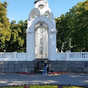 Beim nachfolgenden Spaziergang durch die Stadt folgte ich der Sumska Straße und ihren Nebenstraßen nach Süden. Entlang dieser historischen Hauptstraße liegen zahlreiche öffentliche Einrichtungen und Sehenswürdigkeiten der Stadt. Optisches Highlight ist zweifellos die Kirche der Heiligen Myrrhe-Trägerinnen. Trotz ihres traditionellen Baustils mit neun Kuppeln, handelt es sich um einen erst 2015 geweihten Neubau der Ukrainisch-Orthodoxen Kirche (Kiewer Patriarchat). Am gleichen Ort stand eine alte Kirche gleichen Namens aus dem siebzehnten Jahrhundert, die in den 1930er Jahren von den stalinistischen Machthabern zerstört worden war. Im Park vor der Kirche steht der nachts bunt beleuchtete Spiegelbrunnen (Дзеркальний струмінь), das bekannteste Symbol der Stadt.