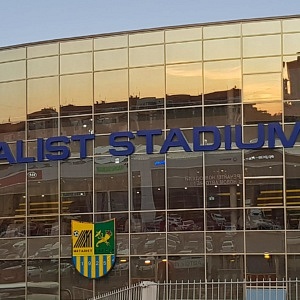 Am frühen Abend machte ich mich zu Fuß auf ins südöstlich des Stadtzentrums, inmitten eines Wohngebiets gelegene Metalist-Stadion. Urspünglich trug die 1926 eröffnete Arena den Namen Traktor-Stadion. Für die Fußball-Europameisterschaft 2012 in Polen und der Ukraine wurde die Spielstätte zwischen 2008 und 2009 umfassend renoviert und erhielt eine Kapazität von 41.307 Sitzplätzen. Die Südtribüne wurde fertiggestellt und eine neue Osttribüne errichtet. Die Arena bekam ein neues Dach, das von einer Stahlgerüstkonstruktion getragen wird und alle Ränge überdeckt.