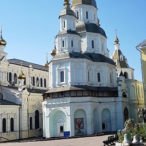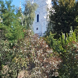 Sehr viel älter ist die Pokrovsky-Kathedrale im Kloster Mariä Schutz und Fürbitte [Покровський монастир] am gegenüberliegenden Hochufer des Lopan. Die bis 1689 im barocken Baustil erbaute Kirche ist das älteste erhaltene Gebäude der Stadt. Die Klostermauern waren im 17. Jahrhundert Teil der Stadtbefestigung, so dass sich bis heute ein abgeschirmter Charakter der Anlage erhalten hat. Das innere der Kirche ist reich geschmückt, und alle Wände sind mit eindrucksvollen Fresken bemalt.