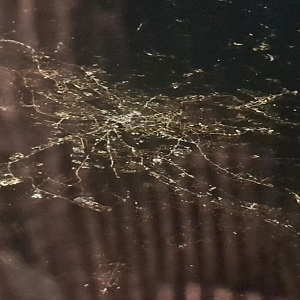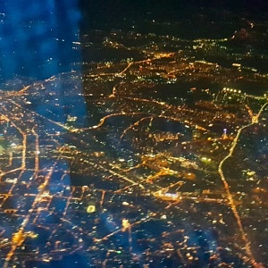 Schnell noch ein letztes Foto vom historischen Flughafengebäude und los ging die Rückreise über Kiew mit einem schönen Blick auf den Dnepr im Sonnenuntergang. Eindrucksvoll auch die Straßen und Plätze von Kiew sowie das hell erleuchtete Olympiastadion, wo an diesem Abend Dynamo Kiew gegen den FC Astana in der Europaleague antrat. In einer wolkenfreien Nacht führte die Flugroute etwas weiter nördlich als beim Hinflug über das südliche Polen, Sachsen und Thüringen. Neben anderen Städten war das nächtliche Dresden deutlich zu erkennen.