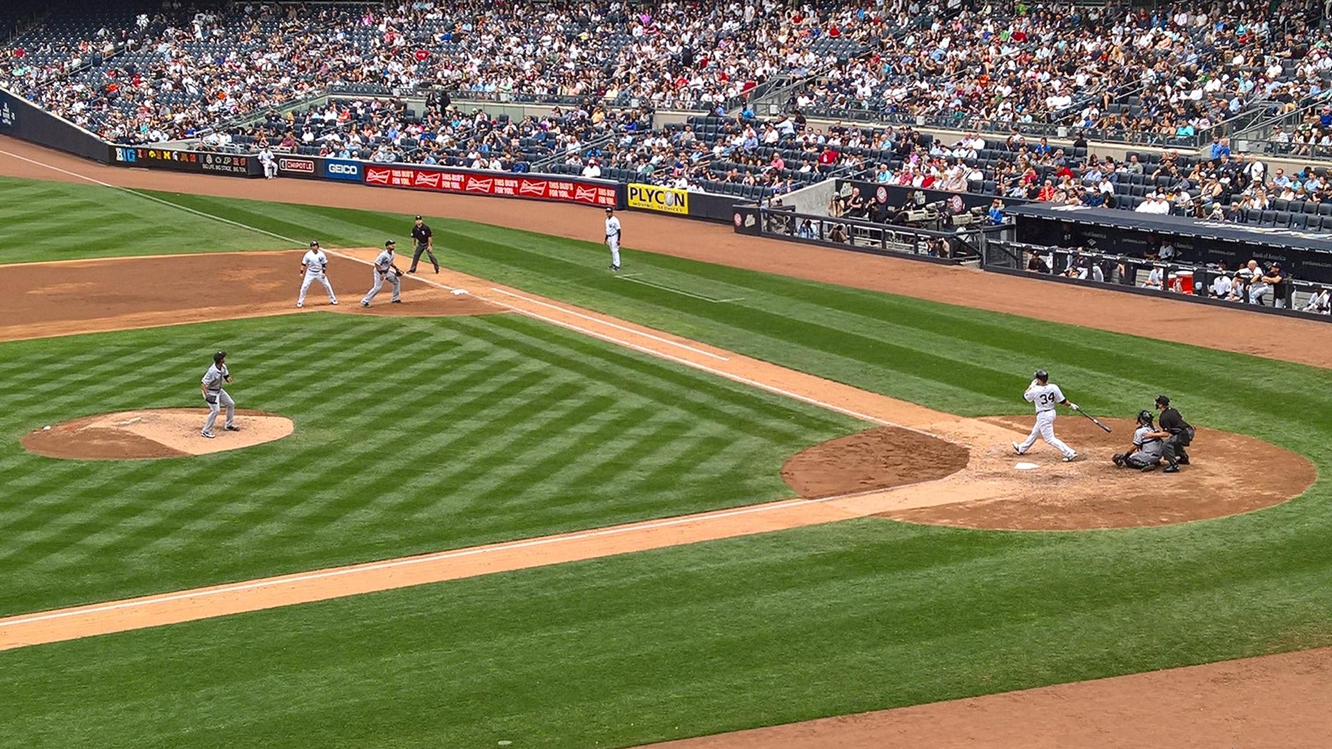 Besuch im Baseballstadion der New York Yankees am 14. Mai 2016. Das Stadion liegt im Süden der Bronx. Es wurde am 3. April 2009 eröffnet und ersetzte das alte Yankee Stadium von 1923, das bis zum 13. Mai 2010 abgerissen wurde. Die Heimstätte der Yankees bietet zu Baseballspielen 49.642 Plätze. Das Spiel gegen die Chicago White Sox endete 2:1. Alle Statistiken zum Spiel gibt es unter https://www.baseball-reference.com/boxes/NYA/NYA201605140.shtml.