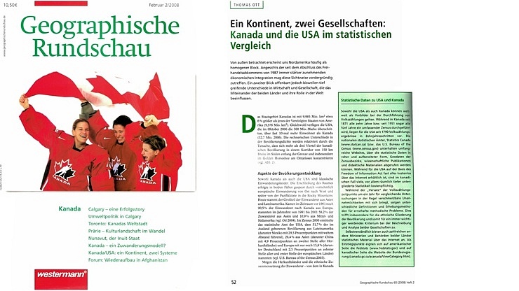 OTT, Thomas (2008): Ein Kontinent, zwei Gesellschaften: Kanada und die USA im statistischen Vergleich. Geographische Rundschau 60 (2), 52-57