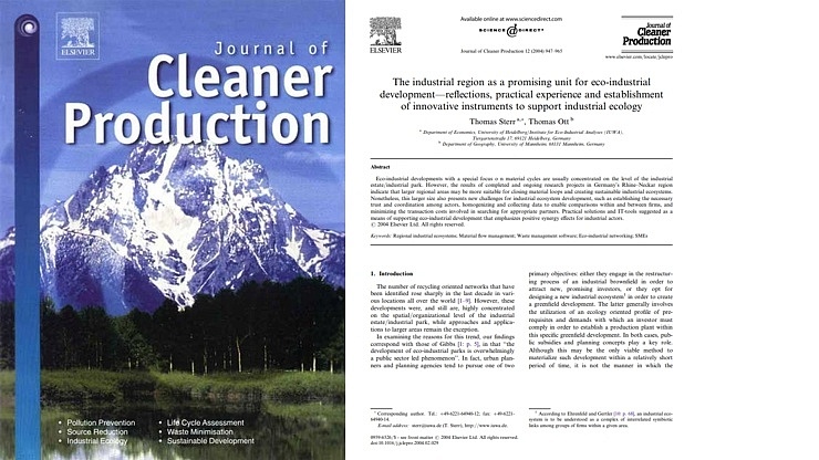 STERR, Thomas / OTT, Thomas (2004): The Industrial Region as a Promising Unit for Eco-industrial Development – Reflections, Practical Experience and the Establishment of Innovative Instruments to Support Industrial Ecology. Journal of Cleaner Production 12 (8-10), 947-965