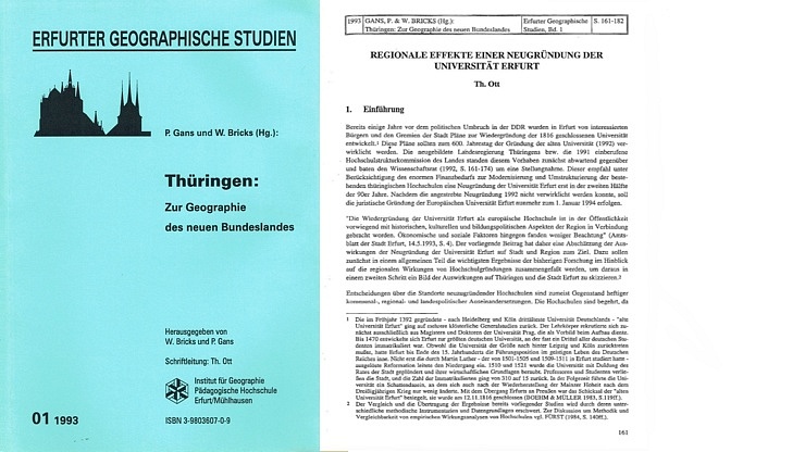 OTT, Thomas (1993): Regionale Effekte einer Neugründung der Universität Erfurt. In: GANS, P. / BRICKS, W. (Eds.): Thüringen – Zur Geographie des neuen Bundeslandes. Erfurter Geographische Studien 1, Erfurt: Institut für Geographie, 161-182